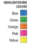 Highlighter/Ink Colors: Choose from selection shown. All include textured, black rubber grip. Ink color matches highlighter color.